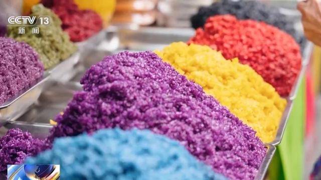 多种颜色搭配在一起,不仅仅是视觉上的震撼,更藏着满满的心意和祝福,五色糯米饭也是当地逢年过节的必备美食。
